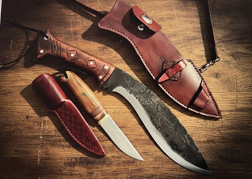 Blacksmith hand forge custom machet and pukko with leather sheath uniquie design It is a rare piece that you cannot find anywhere