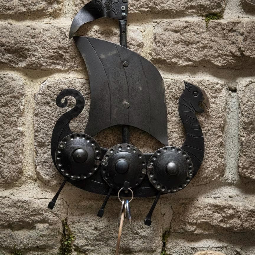 Blacksmith hand forged viking key holder. wall mounted .metal pot rack fixed hooks All the periods of making this product is handmade hand handforged. This give a soul to your livnig area. And by the way it develops your children imagination. this key rack can be used in entryway garage, kitchen and even in children's room to hang jackets on