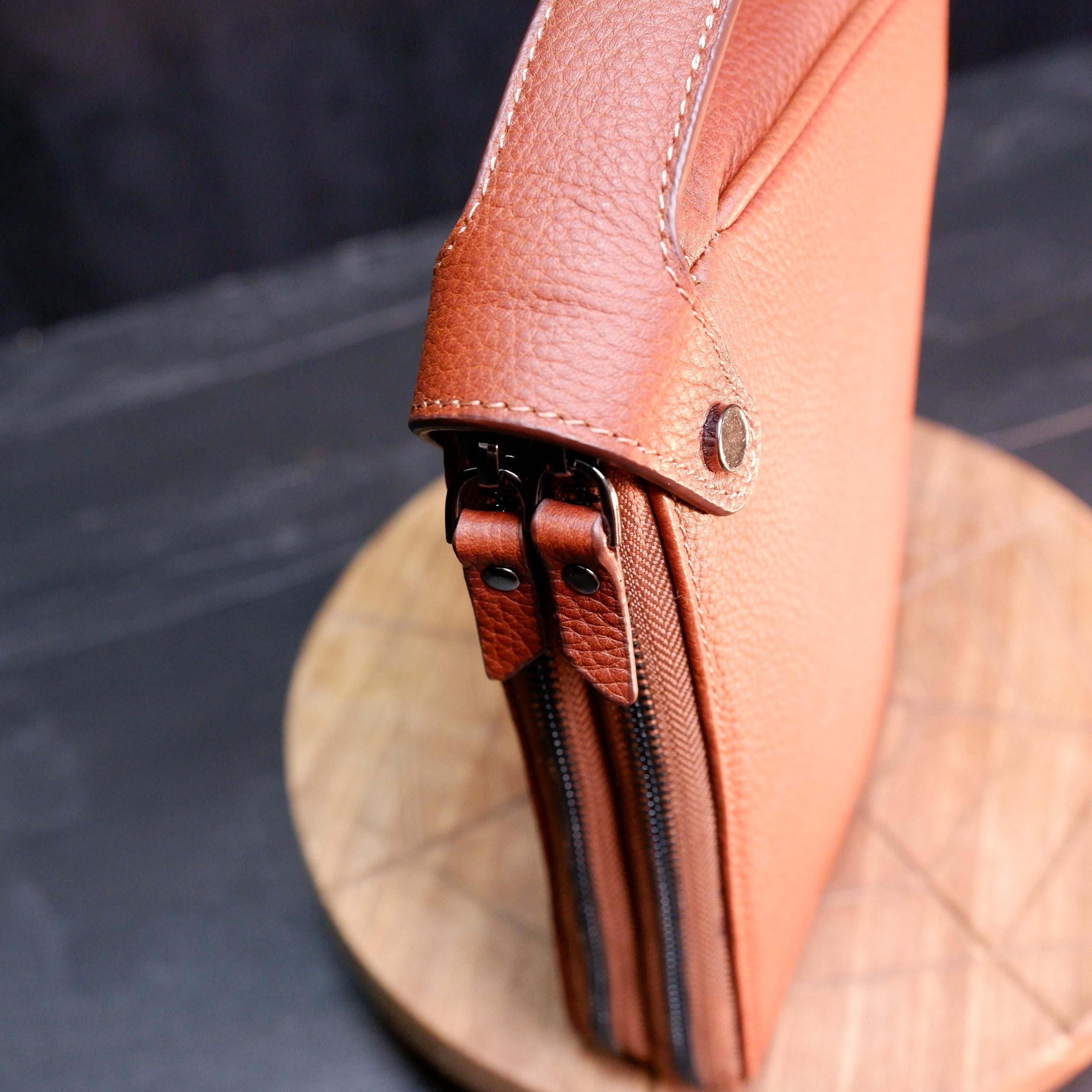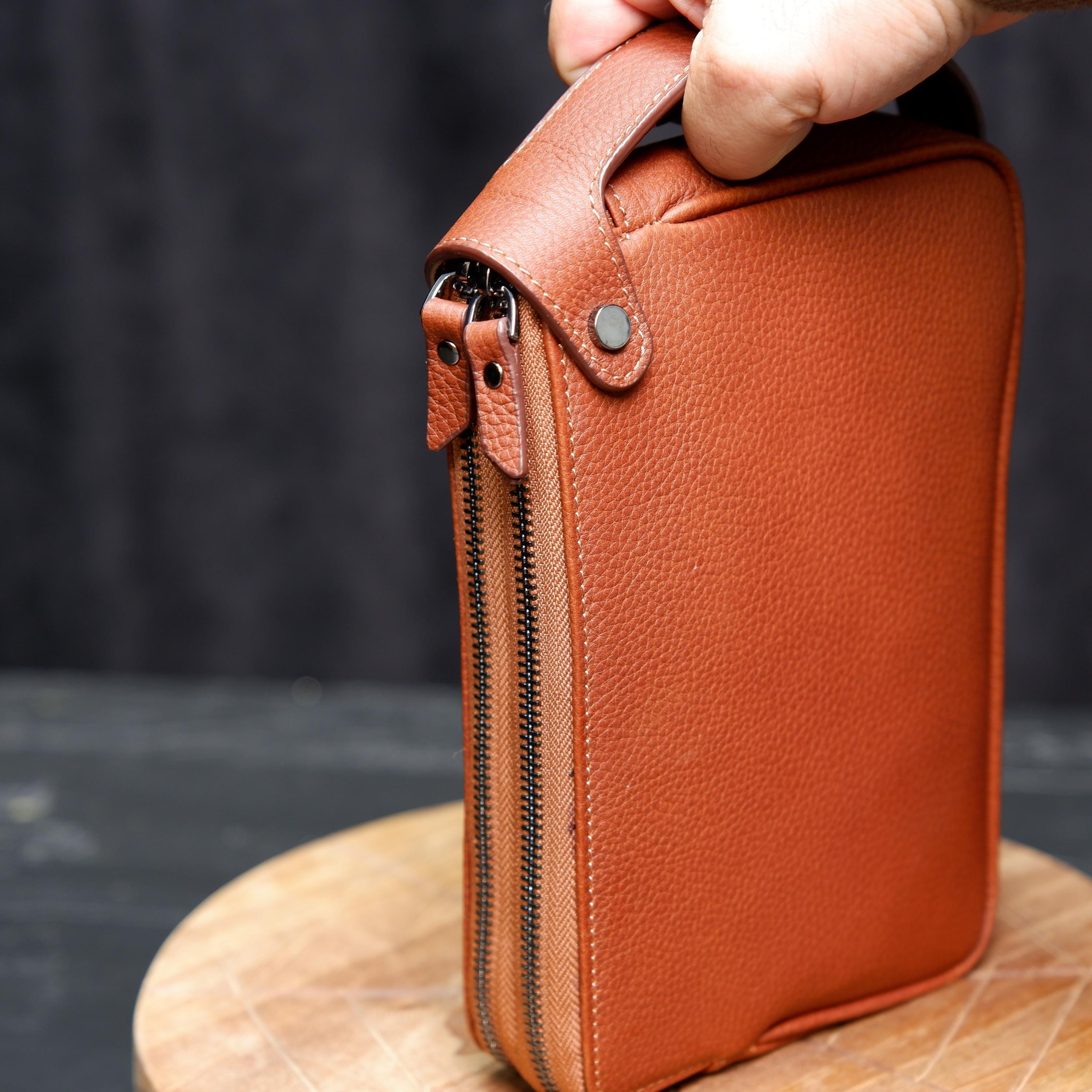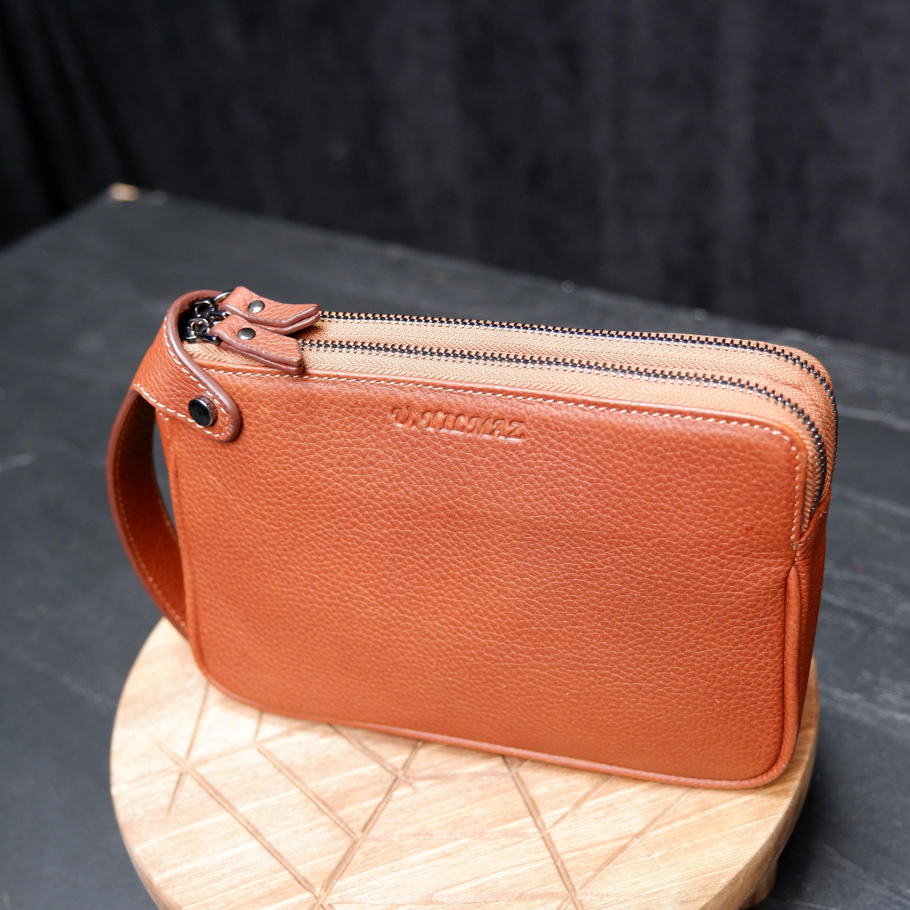 This handcrafted men’s clutch bag is made from 100% genuine full-grain leather and stitched entirely by hand for maximum durability and authentic character. Its minimalist form and clean craftsmanship make it the perfect everyday carry accessory for men who appreciate quality and style.